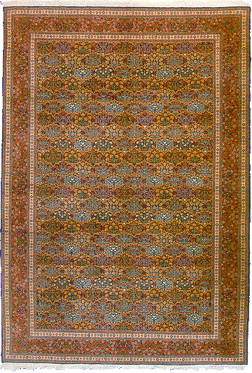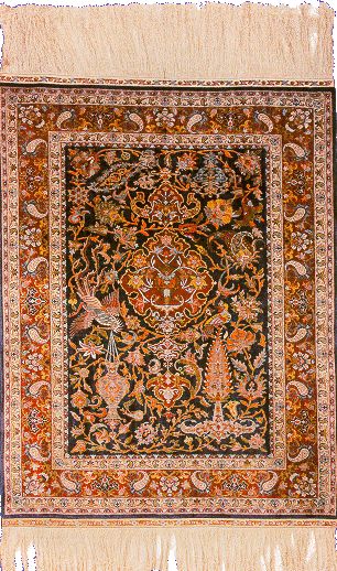 The highest quality genuine silk and wool carpets of the world are woven in the vicinity of Hereke in Turkey. In the silk carpets, 100% pure silk from Bursa is used. In wool carpets the warps and wefts are cotton and the pile is knotted with the highest quality wool from the plateaus. The silk carpets contain from 1 Million to 4 million knots per square meter.